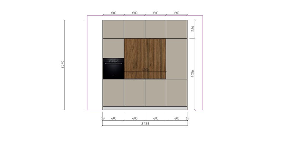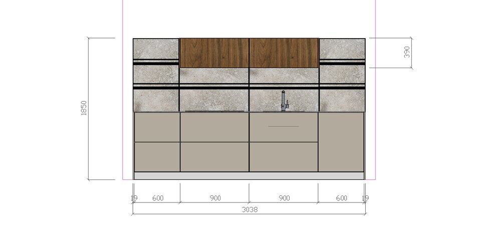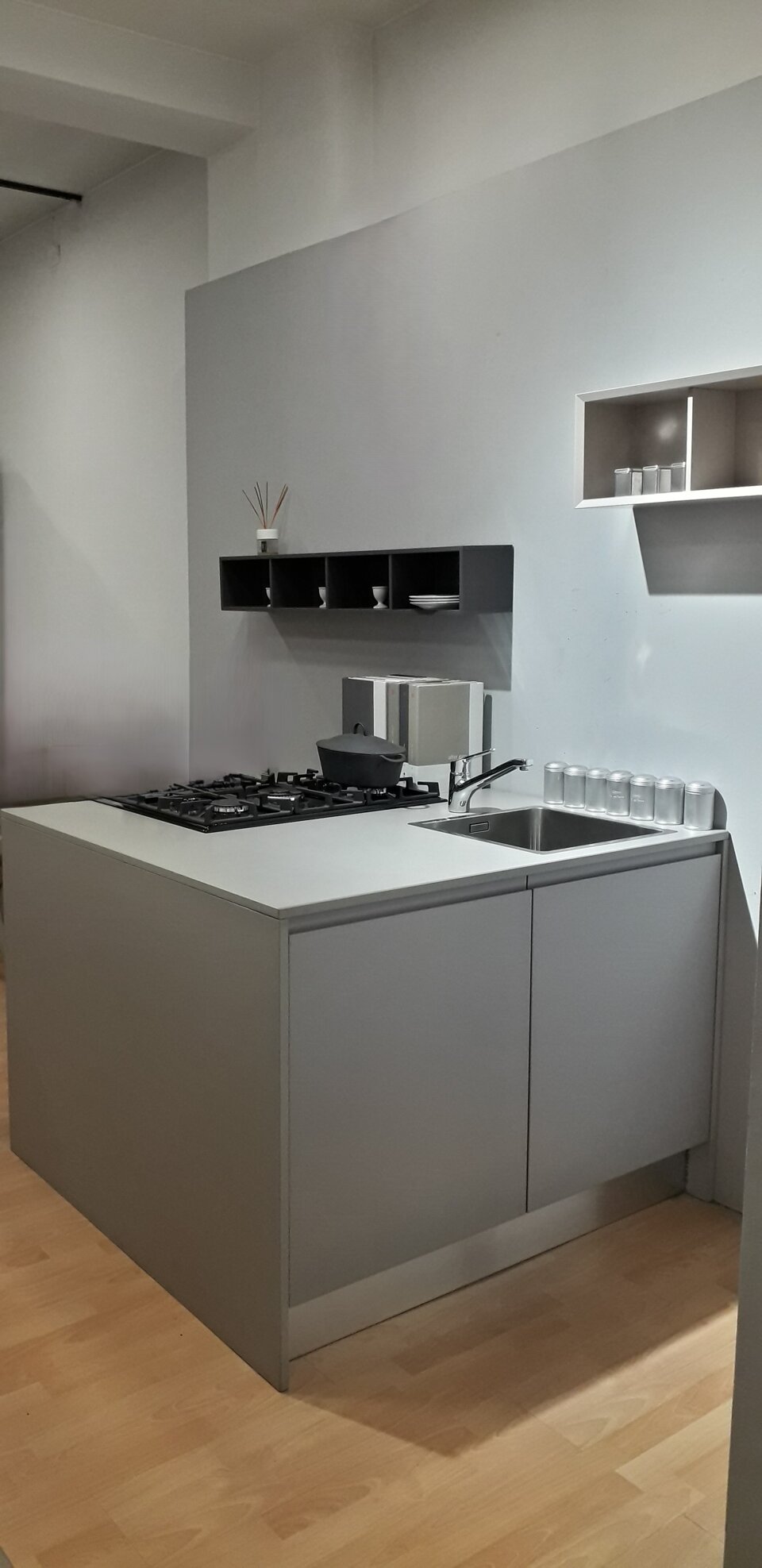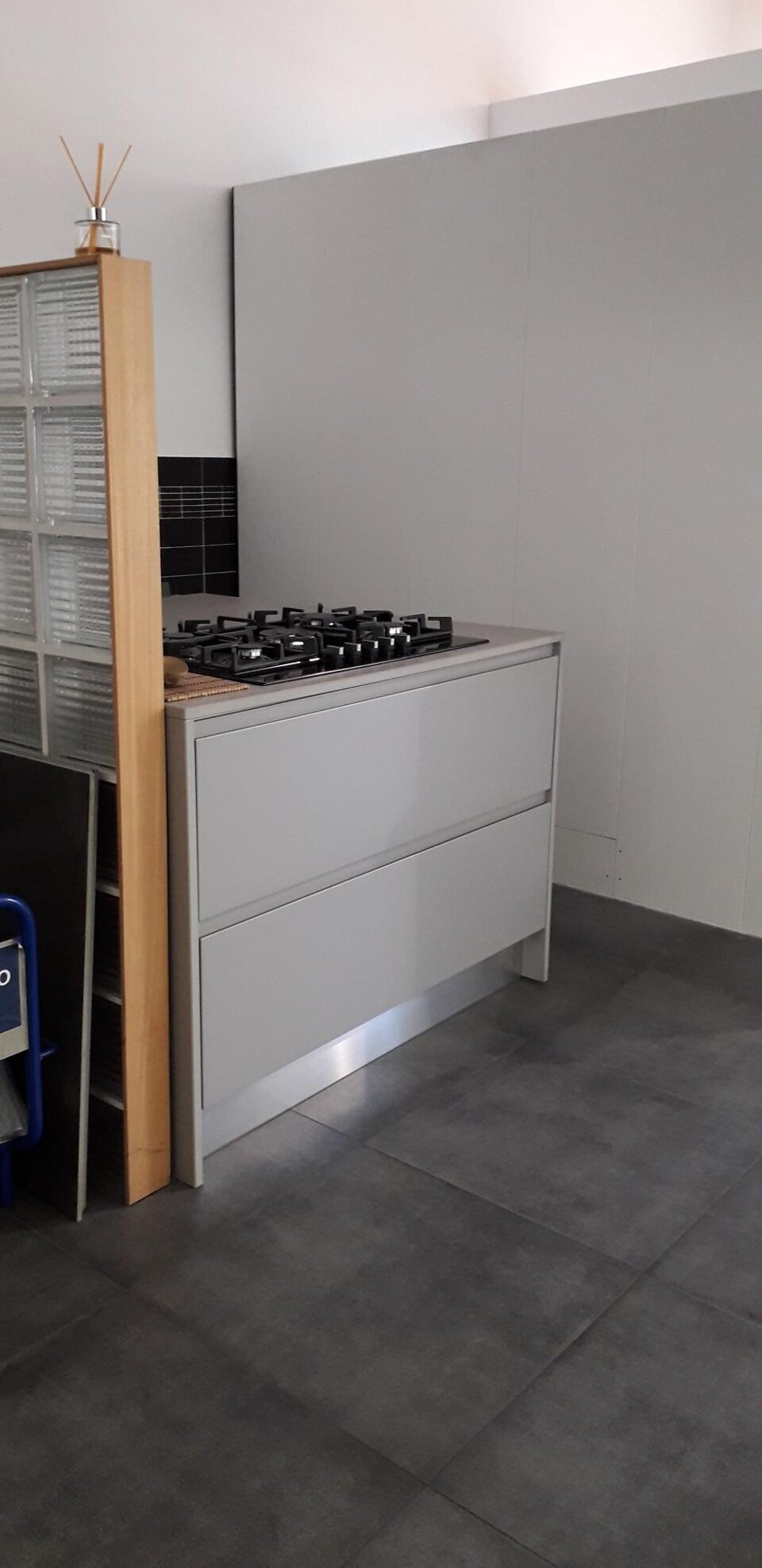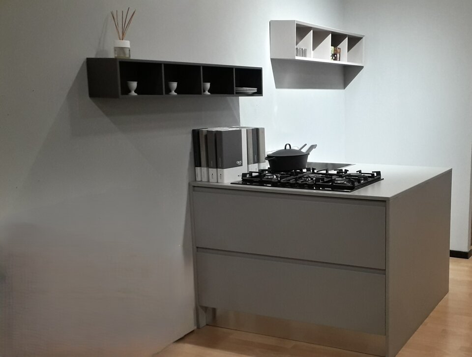 Cucina isola cottura/lavaggio composta da: Base per piano cottura con 2 cestoni cm.120, Base sottolavello con anta cm.60, Base con anta cm.60.