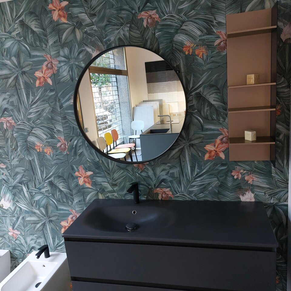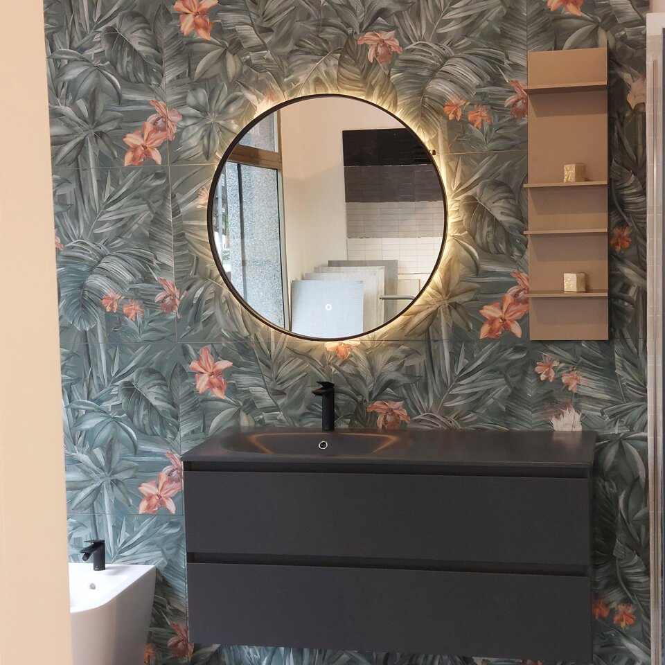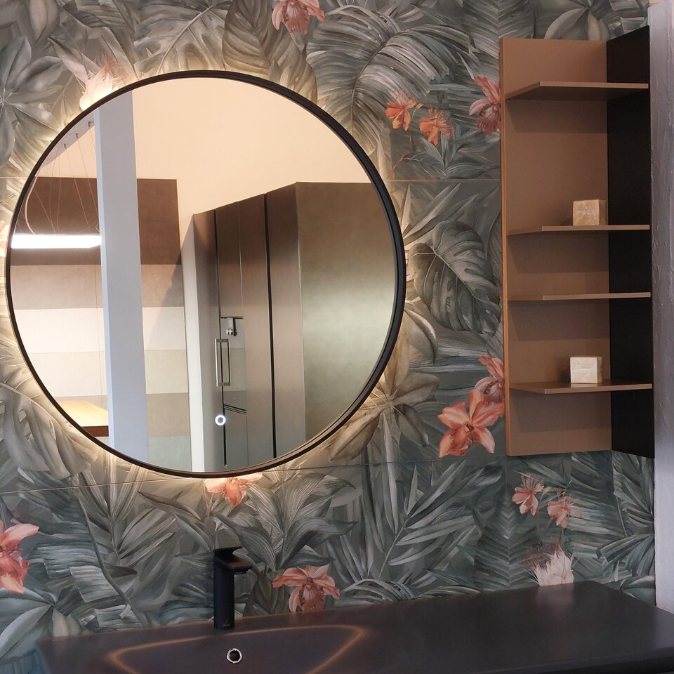 Lo specchio rotondo SPECTRAL ROUND con telaio alluminio NERO opaco, diametro cm.80, è dotato di retroilluminazione perimetrale con interruttore touch luminoso ON/OFF con cambio di colore dimmerabile led dynamic.